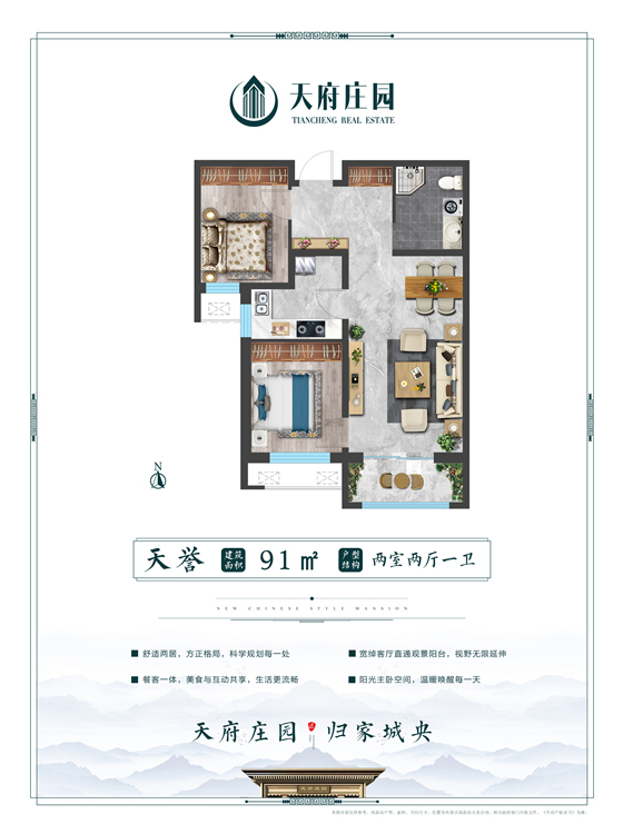 恰到好处的空间法则,建面约91-260平方米精工大宅,超大空间,格局方正,南北通透,轩朗宽亭,幸福不彰自显;享电梯入户,客厅卧室三面朝阳,贴心布局,满足您对品质生活的要求。